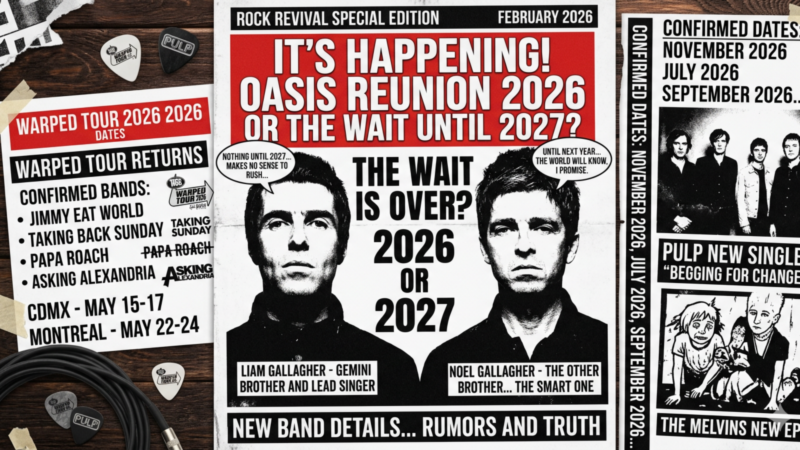 A special edition rock cover presenting the latest headlines in alternative music, from Oasis reunion rumors to Warped Tour’s expansion and new releases from legacy artists redefining their sound.